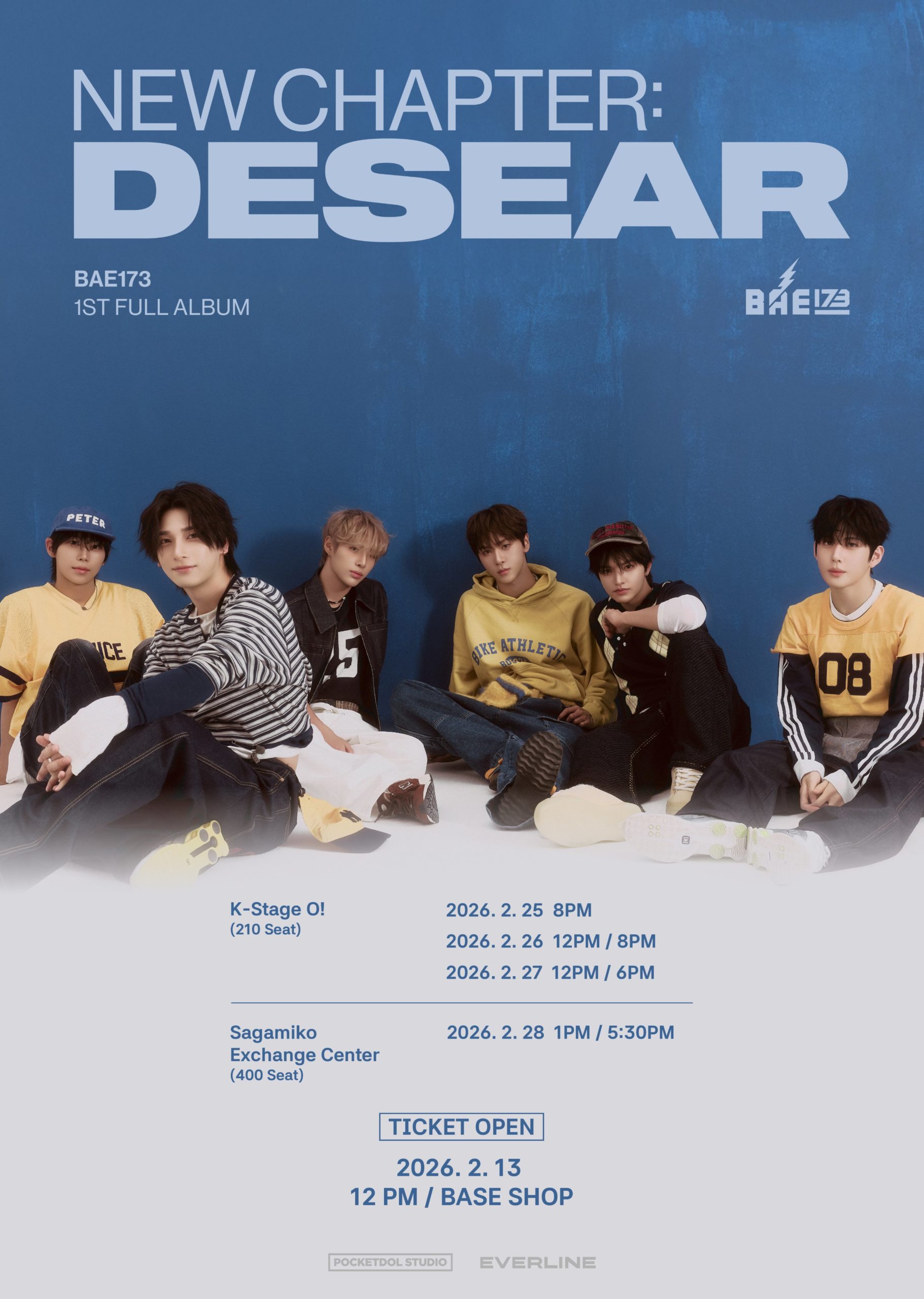 BAE173の1stフルアルバム『NEW CHAPTER : DESEAR』を携えての日本オフラインイベントが決定。2月25日から28日まで、東京・神奈川の2会場で公演が行われる。