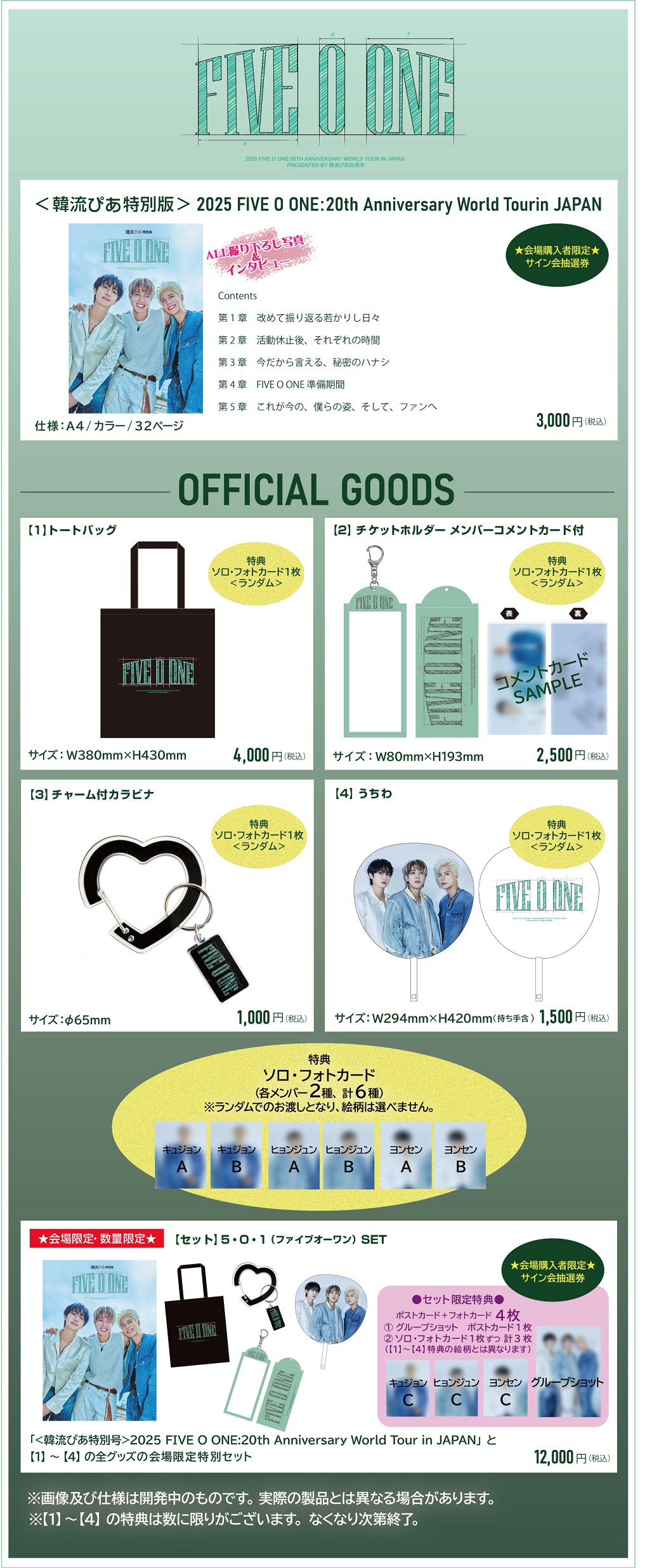 『2025 FIVE O ONE:20th Anniversary World Tour in JAPAN presented by 韓流ぴあ』公演会場では、発売に先駆けた先行販売と、購入者限定特典となるサイン会が実施される。