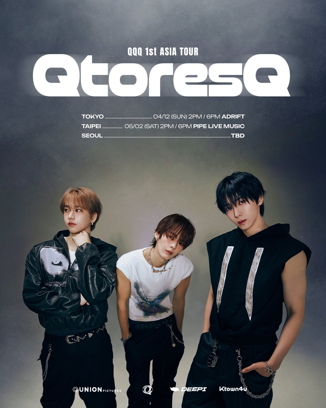 『QQQ 1st ASIA TOUR <QtoresQ> in TOKYO』は、4月12日に下北沢・ADRIFTで開催される。アーリーバード特典付きチケットは3月1日より販売開始。また、公演前日の4月11日にもメンバーとの特典会が実施される。