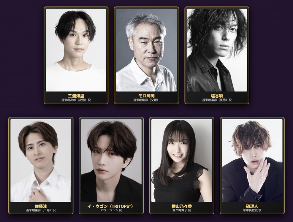 今回、主演の次男・苫米地次郎役を務めるのは、ハイパープロジェクション演劇『ハイキュー』シリーズ、舞台『ブルーロック』、映画『ゲネプロ★7』などで活躍する三浦海里。苫米地家の父・俊彦役に、名バイプレイヤーとして数多くの作品に出演し、ひとりコントや古典落語を現代に置き換えた”サラリーマン落語”をライフワークとして活動するモロ師岡。長男・道彦役に、映画『パッチギ!』にてアカデミー賞各賞を受賞し、日本映画・最多出演賞を受賞するなど第一線で活躍しながら、国際支援活動やネパール親善大使も務める塩谷瞬が決定した。