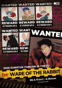 SUPER JUNIOR ウニョク、ファンコンサート『be:WARE OF THE RABBIT』開催決定!日本公演は4月東京で 新着イベント情報 2026-02-14 ▼3/3更新▼ ・FC 2次先行受付 * SUPER JUNIORのウニョクのファンコンサート『2026 EUNHYUK FANCON [be:WARE OF … 記事を読む