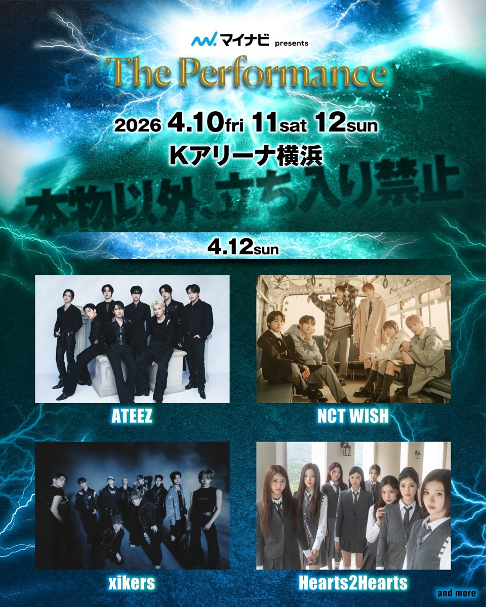 そして、最終日の4月12日には、北米でのスタジアムツアーを成功させるなどグローバルな存在感を放つATEEZをはじめ、『The Performance』初出演となるNCT WISH、ATEEZの弟分として高い表現力・完成度でファンを魅了するxikers、昨年は新人賞7冠を達成し人気拡大中のHearts2Heartsが名を連ねる。