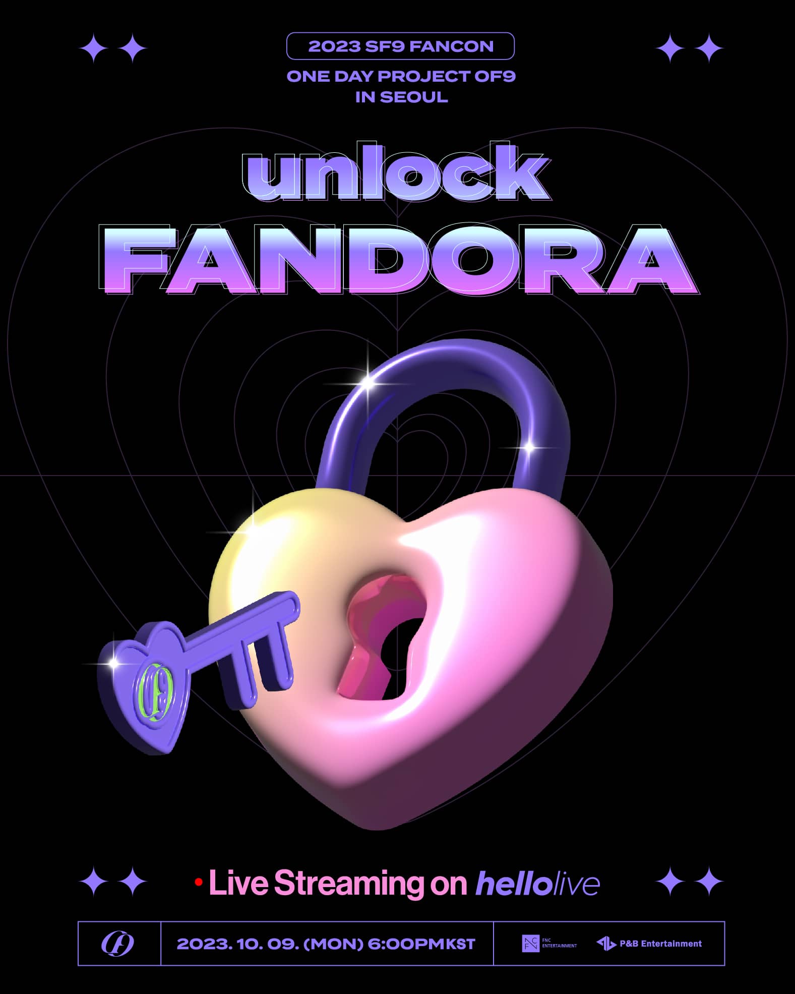 10月9日(月)ソウル・オリンピックホールにて開催されるSF9のファンコンサート「2023 SF9 FAN-CON ONE DAY PROJECT OF9 -unlock FANDORA- in Seoul」をhelloliveで生中継。