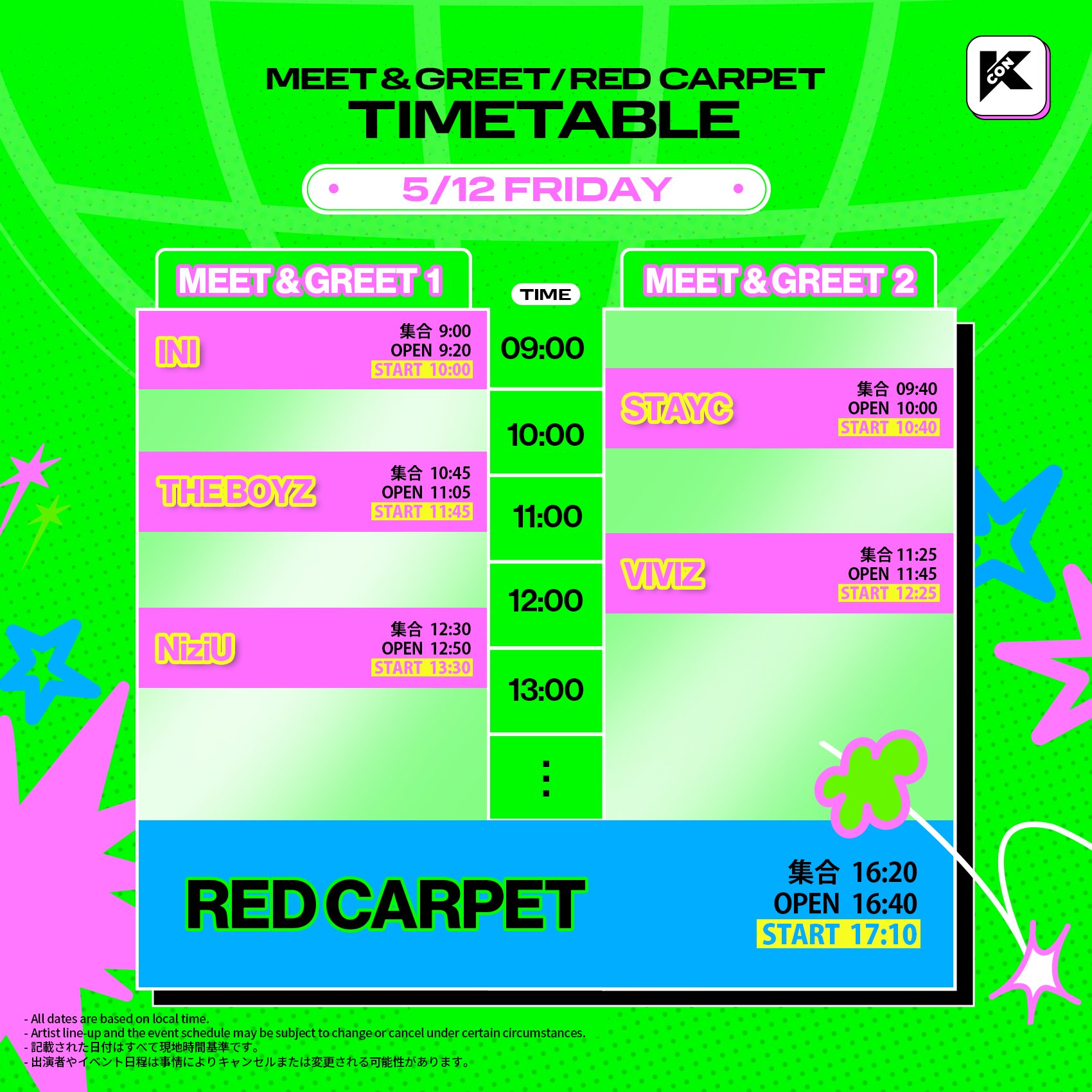 ※タイムテーブルは現場の事情により変更される可能性あり