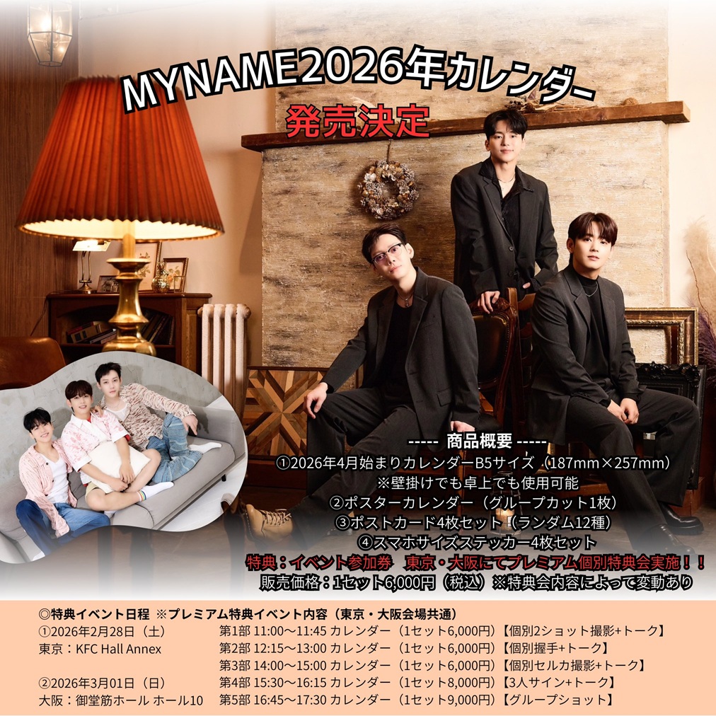 2026年もMYNAMEと一緒に歩んでいただきたいというメンバーの想いから、完全撮り下ろしのカレンダーの発売が決定しました😁… pic.twitter.com/Lu79Jfl3vG— MYNAME 日本公式 (@myname_jp) January 12, 2026