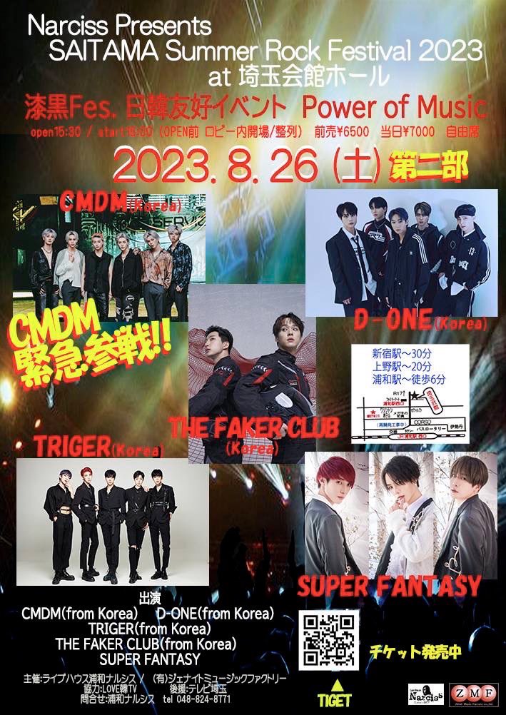 そのDAY6となる8月26日(土)『漆黒Fes. 日韓友好イベント Power of Music』に、韓国からD-ONE、TRIGER、THE FAKER CLUBの出演が決定。